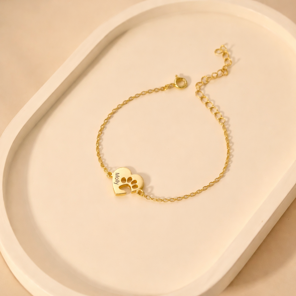Keep your furry friend close with our Custom Paw Print Bracelet — a personalized piece made especially for pet lovers. Whether you’re honoring a beloved dog or cat, this bracelet features a detailed paw print charm engraved with your pet’s name, creating a timeless tribute to the unconditional love they bring.